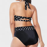 Este biquíni de padrão floral traz um toque exótico e sofisticado aos teus dias de verão. O top com decote halter oferece excelente suporte e modela o busto de forma natural, enquanto a cueca de cintura subida com detalhes drapeados ajuda a definir a silhueta com conforto e confiança.
